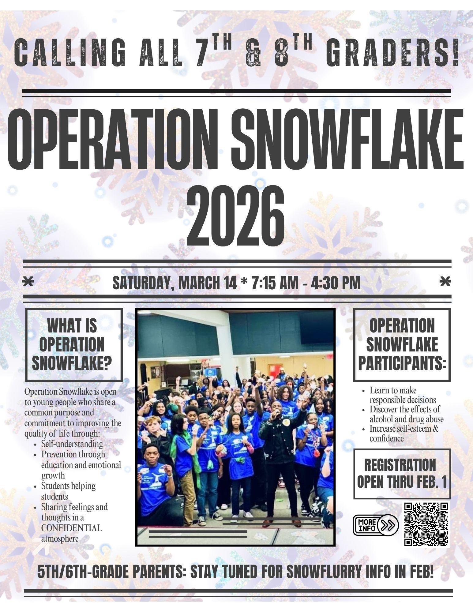 For families looking for registration for Operation Snowflurry (6th Graders), watch for more information on registration in February!